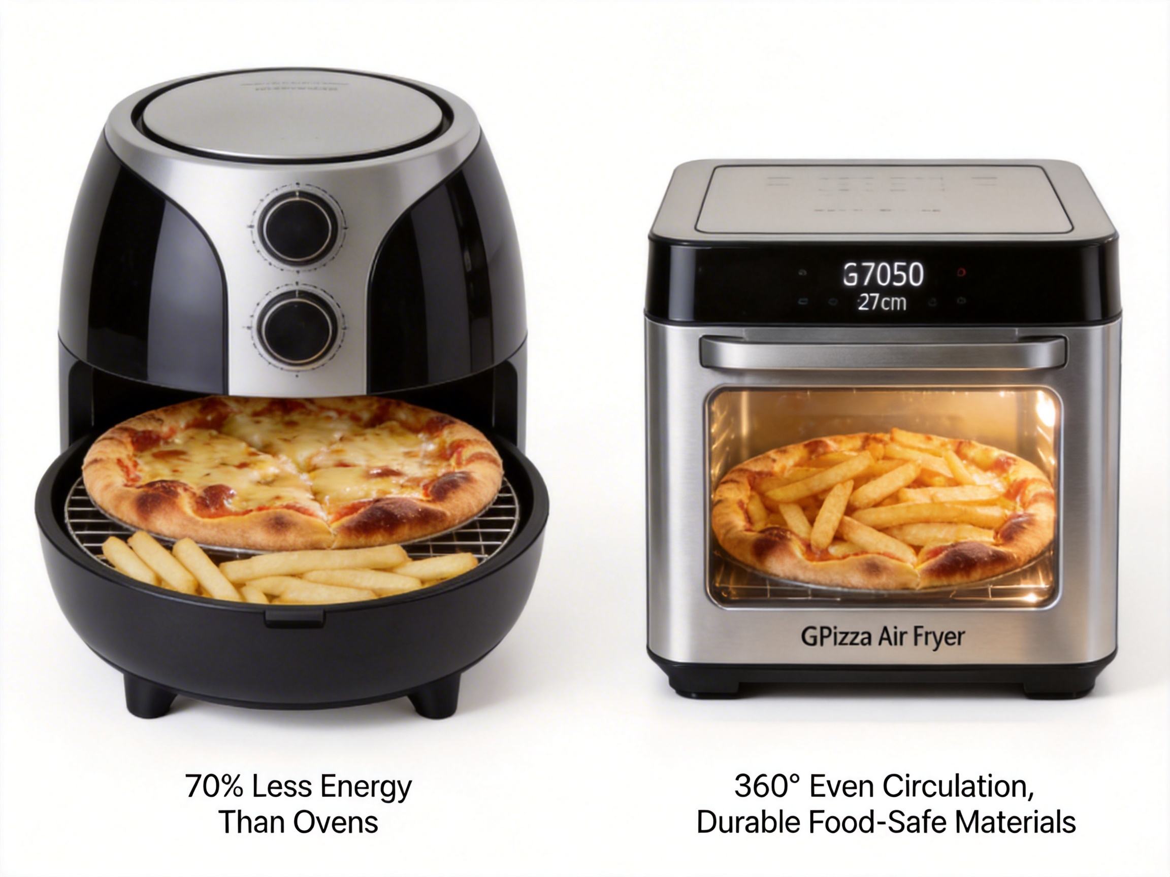 The GSE050 Pizza Air Fryer outperforms many competing models in key areas, including capacity, cooking technology, energy efficiency, and material quality. Below is a detailed comparison of the GSE050 with common air fryers on the market: