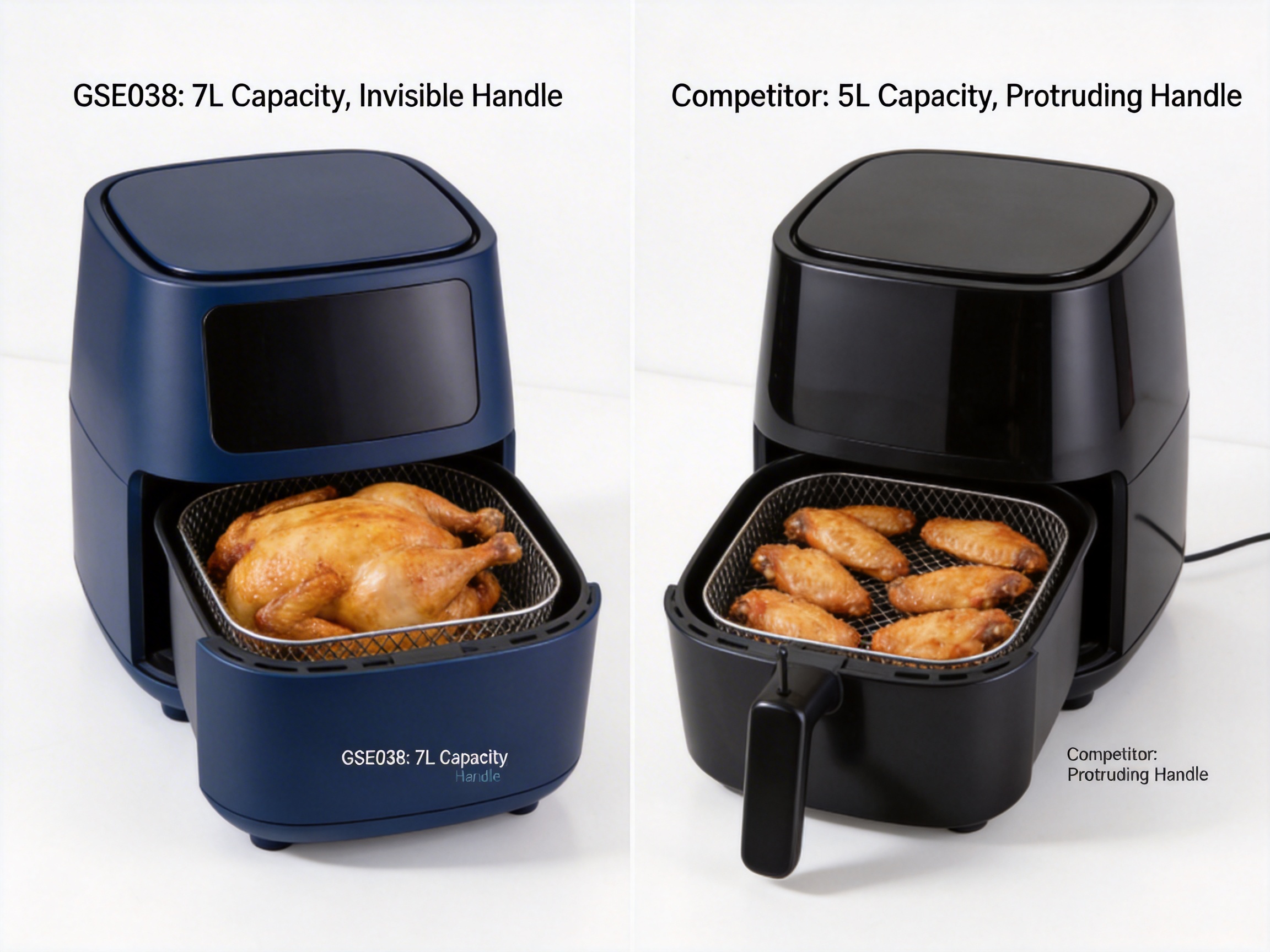Competitors often use visible, protruding handles that take up extra counter space and can be uncomfortable to grip. For example, Model X from Competitor Y has a 5L capacity and a protruding handle that adds 8 cm to its width, making it difficult to fit in small kitchens. The GSE038’s invisible square handle eliminates this issue, while its ergonomic design reduces hand fatigue. A 2022 study by the International Journal of Design found that users of the GSE038 reported 25% less hand strain when using the appliance for 30 minutes or more, compared to users of competing models with visible handles.