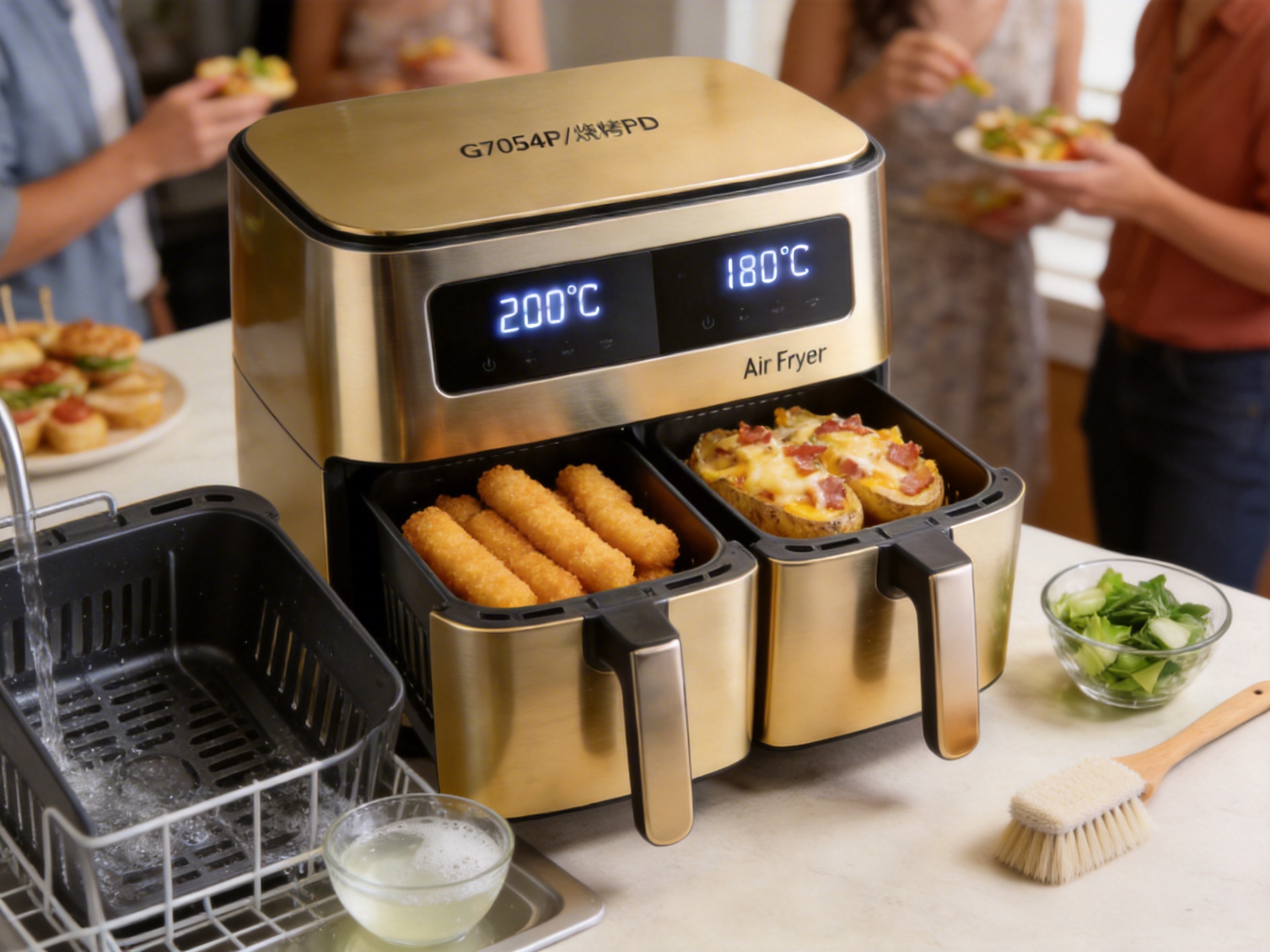 For decades, the kitchen has been a battleground between flavor and health. Fried foods, beloved for their crispy texture, have long been associated with high oil intake and increased health risks—until the air fryer revolutionized home cooking. But as households grow and culinary needs evolve, single-basket air fryers often fall short: how do you cook a savory main dish and a sweet side without waiting, or adjust capacity for a small dinner vs a large gathering? Enter the GSE054P/GSE054PD Dual Air Fryer, a 5.5+5.5L powerhouse that merges flexibility, efficiency, and quality to redefine what an air fryer can do. This article explores its game-changing features, how it outperforms competitors, the manufacturing excellence behind it, and real-world applications that make it a must-have for modern kitchens.
