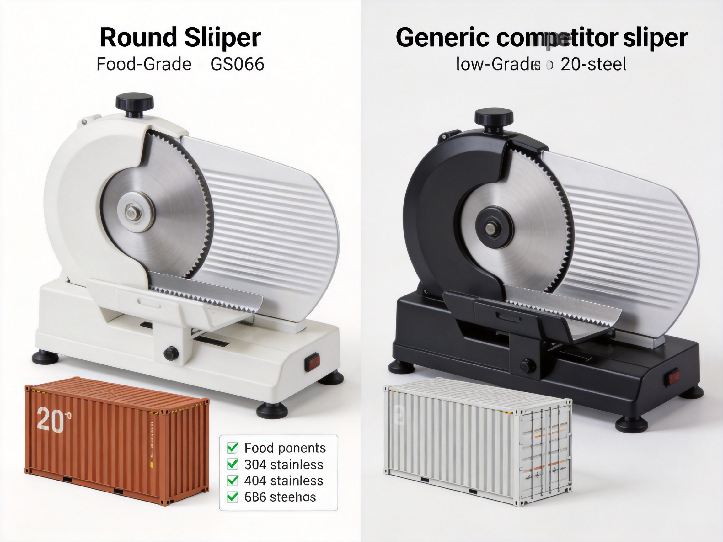 Delivery time is a critical factor for businesses. The Round Slicer GS066’s 30-day delivery window is significantly faster than competitors’ 45–60 days, allowing buyers to restock or launch new products quickly. Additionally, its 18-piece carton size maximizes shipping efficiency: a 20-foot container can hold 12240 pieces, and a 40-foot HQ container can hold 29736 pieces—far more than competitors’ 12-piece cartons, reducing per-unit shipping costs.