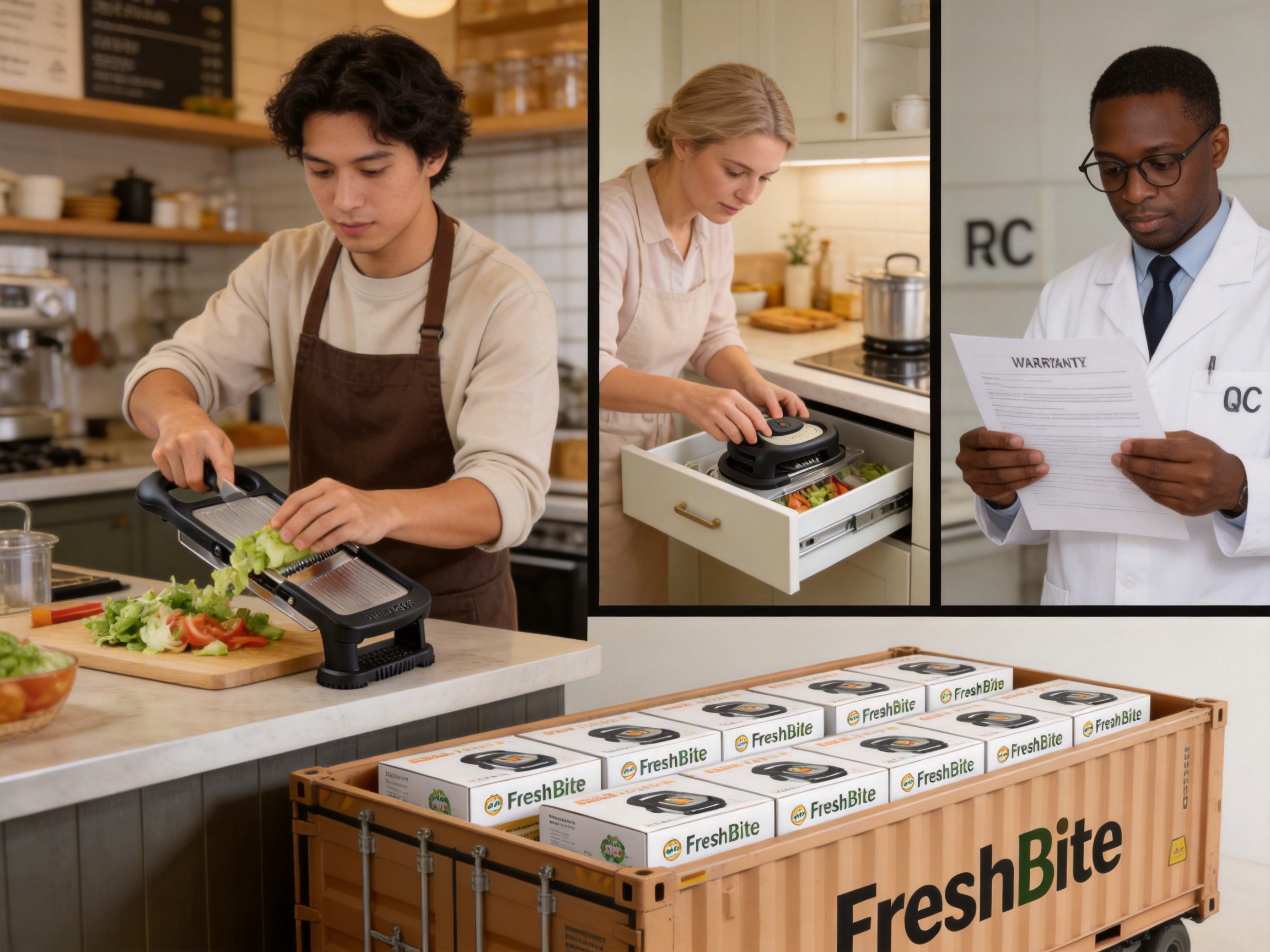 - Final inspection: A random sample of 5% of each batch is tested for durability (e.g., dropping from 1 meter, slicing 1000 pieces of carrot) to ensure it meets performance standards.