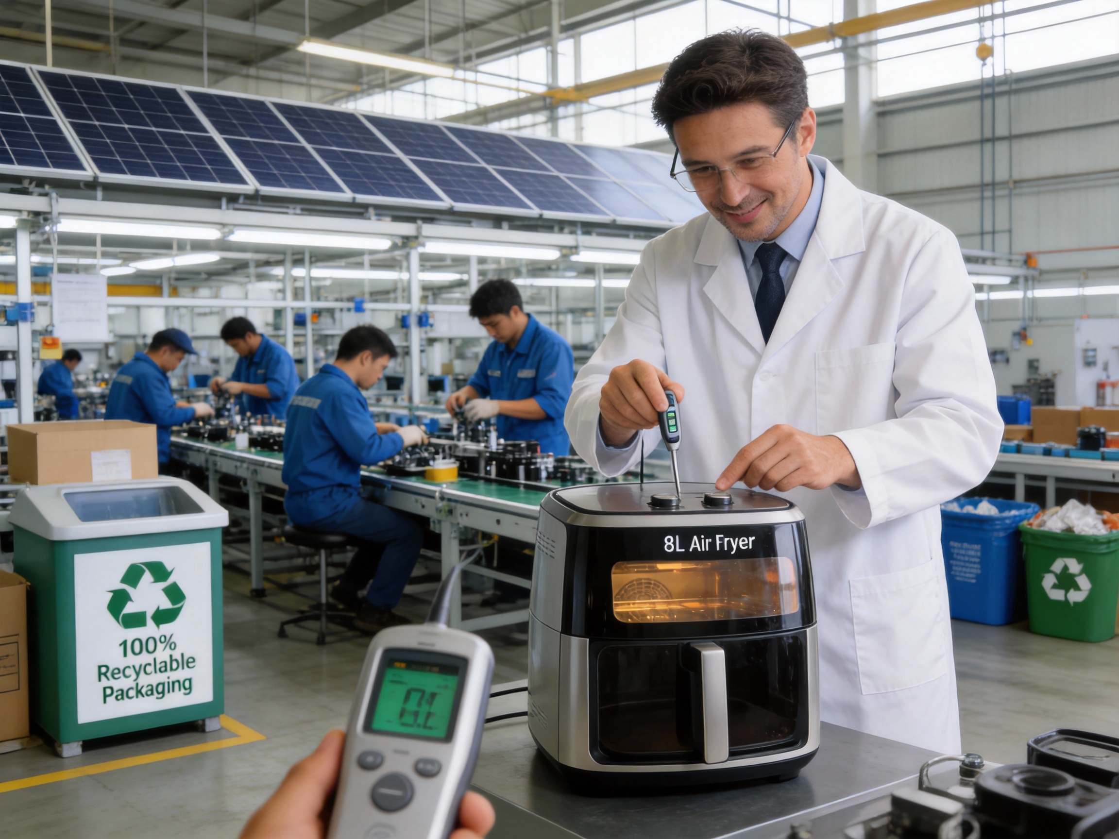 - Energy Efficiency: The factory uses solar panels to power 20% of its operations, reducing its carbon footprint. The air fryer itself is designed to be energy-efficient, with a 1700W element that uses less energy per meal than traditional ovens.